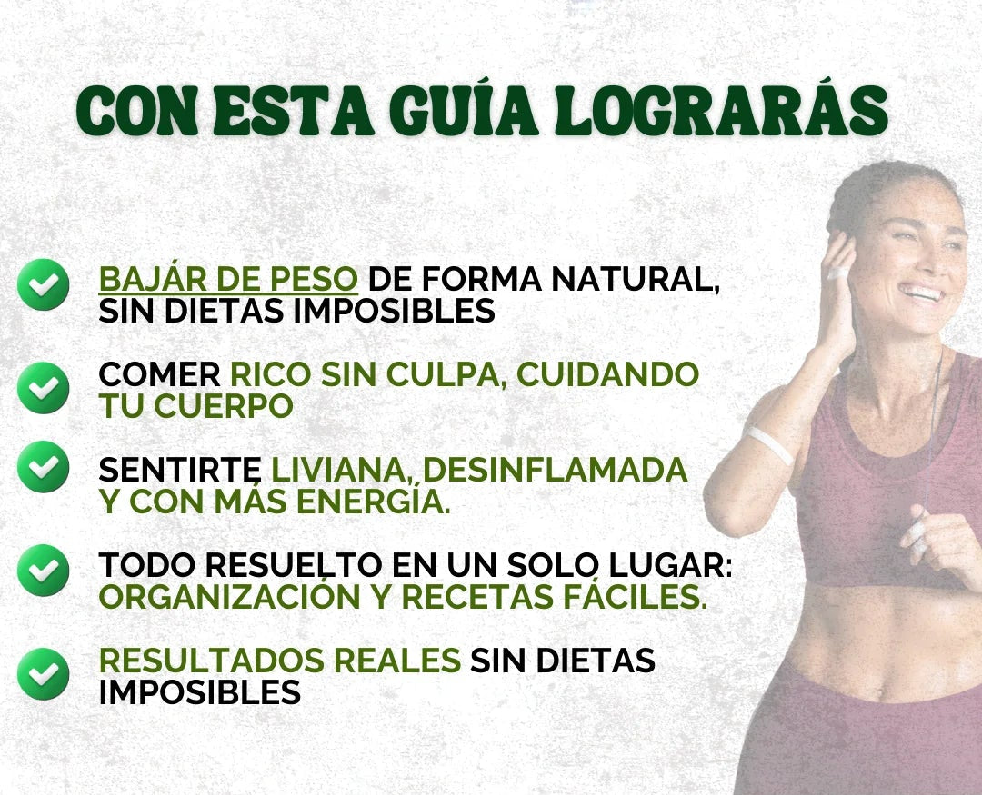 El paso a paso es claro y las recetas son rápidas. Me encantó el bonus del reto 21 días: me ayudó a crear hábitos y a perder la ansiedad por lo dulce. Feliz!!